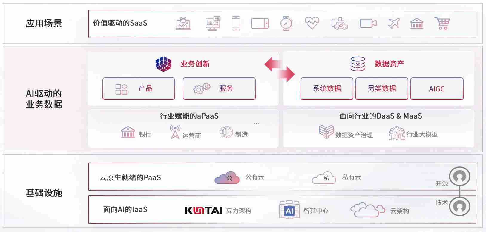 数字时代,,围绕企业数字化转型的关键要素,,LETOU数码开创性的提出数云融合战略和技术体系框架,,,,着力在云原生、、、、数字原生、、、、AI原生和信创产业上架构产品和服务能力,,为处在不同数字化转型阶段的快消零售、、汽车、、金融、、医疗、、政企、、教育、、运营商等行业客户提供泛在的敏捷IT能力和融合的数据驱动能力,,,,构建跨界融合创新的数字业务场景和新业务模式,,助力企业级客户建立面向未来的核心能力和竞争优势,,全面推动社会的数字化、、、、智能化转型升级。。。